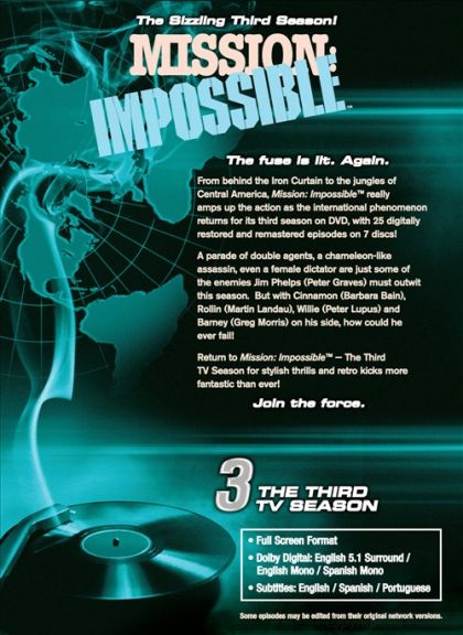 This 7-year series chronicled the adventures of the Impossible Mission Taskforce (IMF), a team of government spies and specialists who were assigned "impossible missions" by the unseen "Secretary". Although the cast varied over the years, the main characters included The Team Leader (Dan Briggs the first season, then Jim Phelps the other six), The Techno-Wizard (Barney Collier), The Strongman (Willy Armitage), The Master of Disguise (first Rollin Hand, then The Amazing Paris), and The Femme Fatale (Cinnamon Carter, Casey, Dana Lambert, Mimi Davis). The series is best known for its opening mission assignment (conducted by a pre-recorded tape), the leader's selection of mission agents from a dossier, the opening briefing, the intricate use of disguises and a typical "mask pulloff" scene near the end of most episodes, and the relative lack of characterization of the characters.