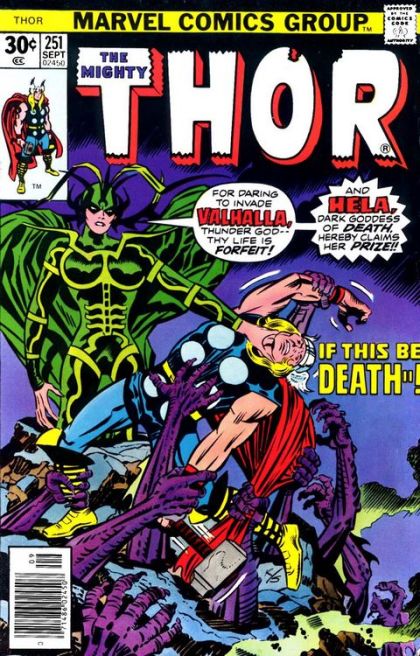 Thor broods over Odin's disappearance. When the Vizier fails to find Odin "upon all the many spheres and planets," Thor wonders if the All-Father is dead. He journeys to Valhalla, where his horse dies. Proceeding on foot, Thor encounters Harokin and the Einherjar who, outraged that anyone living would enter Valhalla, attack. During the battle, Thor spies a shadowy figure on a mountain that he believes is Odin but the Einherjar fell him with the Troll-made Bludgeon Bow before he can investigate. Rising again, Thor fights his way toward the shadowy figure but Hela intervenes and assures him Odin is not there. Unbelieving, Thor climbs the mountain only to discover that the figure is Grombar, an aged warrior. Upset and depressed, Thor wearily heads back to Asgard.