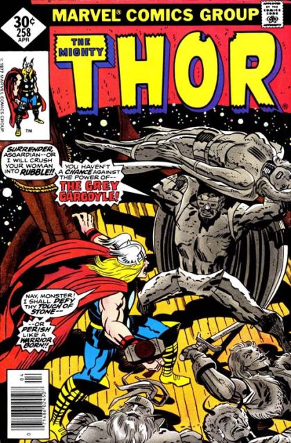The Grey Gargoyle's pirate ship has come across the Asgardians. The Asgardians begin to quickly go through the pirates, until the Grey Gargoyle enters the fray. He quickly turns everyone but Thor to stone, and before Thor can move, the Grey Gargoyle grabs the petrified Sif, and threatens to smash her unless Thor surrenders. Back in Asgard, the council of war is planning their moves when Karnilla calls Balder to the gate. Just then, the Enchantress and the Executioner break down the door. Back in space, the Asgardians wake from the Grey Gargoyle's spell to find themselves in slave collars. They are sent to the furnace room, to stoke the flames of the ship. The Asgardians toil at their labors since the slave collars allow little else. Once back in their pens, the Recorder reveals that he has discovered that he knows how to remove their collars after spending several hours scanning them. He gets them off and just then the Grey Gargoyle comes in.