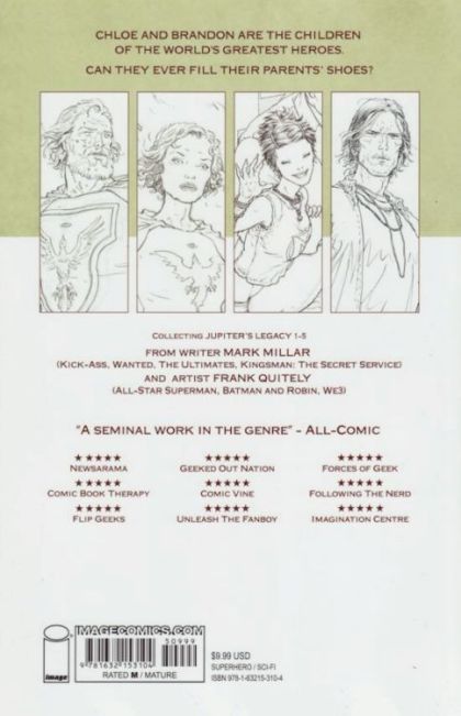The children of the world's greatest superheroes may never be able to fill their parents' shoes. When the family becomes embattled by infighting, one branch stages an uprising and another goes into hiding. How long can the world survive when one family's super-powered problems explode onto the global stage? Just in time for the launch of the prequel series JUPITER'S CIRCLE comes this collected edition from storytelling masters MILLAR and QUITELY. Collects JUPITER'S LEGACY #1-5