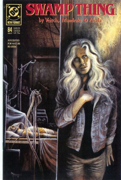 It's never a pleasant experience visiting someone in the hospital, but Abby faces some definite horrors in this visit to see Matt as she's forced to make a most painful decision. Sandman cameo. Written by Rick Veitch, with art by Tom Mandrake and Alfredo Alcala. Cover by John Totleben. Suggested for Mature Readers. New Format. Cover price $1.25.