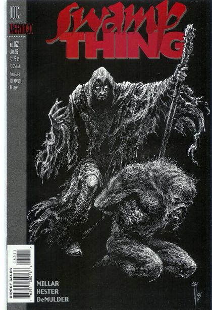 'Atmospheres' continues: Trapped within the monstrous form of a Wicker Man, Swamp Thing must use his new elemental abilities to escape and prevent the Druid from destroying his consciousness forever. Meanwhile, Abby Arcane faces a different kind of horror in the swamp. Written by Mark Millar, with art by Phil Hester and Kim DeMulder. Cover by John Totleben. Suggested for Mature Readers. FC, 32pg Cover price $2.25.