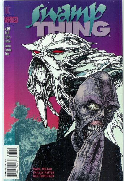 'Trial by Fire,' part 3 of 6. Mark Millar's climactic Swamp Thing storyline continues: As Swamp Thing plots to destroy all life on Earth, the Phantom Stranger's agents oppose him on two fronts: The Word cuts a bloody swath through the elemental community, and a strangely changed Anton Arcane confronts Swamp Thing directly - for the final time. Written by Mark Millar, with art by Phil Hester and Kim DeMulder. Cover by John Totleben. Suggested for Mature Readers. FC, 32pg, Mando Format Cover price $2.25.