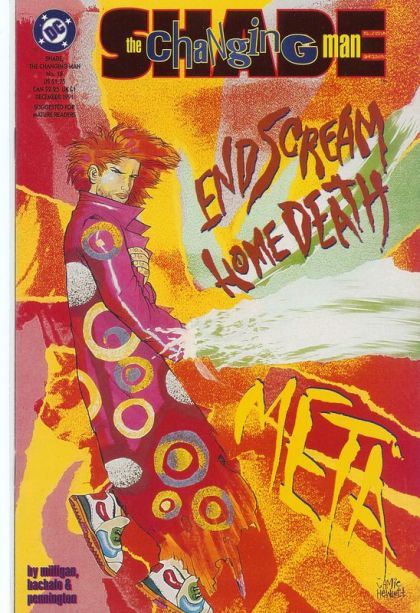 The 'American Scream' concludes as Shade returns to Meta in order to destroy it at the source...his old teacher, Wisor. Written by Peter Milligan, with art by Chris Bachalo and Mark Pennington. Painted cover by Jamie Hewlett. Suggested for Mature Readers. New Format. Cover price $1.75.