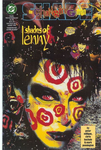 Lenny, the most delightful highwaywoman to ever hold up a taxi, tells her version of life with Shade, love with Kathy, and her own take on the pursuit of happiness. Written by Peter Milligan, with art by Chris Bachalo and Mark Pennington. Painted cover by Brendan McCarthy. Suggested for Mature Readers. New Format. Cover price $1.75.
