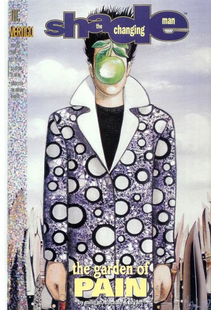 Part 3 of the 3-part 'Birth Pains.' Shade is tortured in the Garden of Pain, while Kathy negotiates his reincarnation with the angels. Written by Peter Milligan, with art by Chris Bachalo and Rick Bryant. Painted cover by Bachalo. Suggested for Mature Readers. New Format. Cover price $1.75.