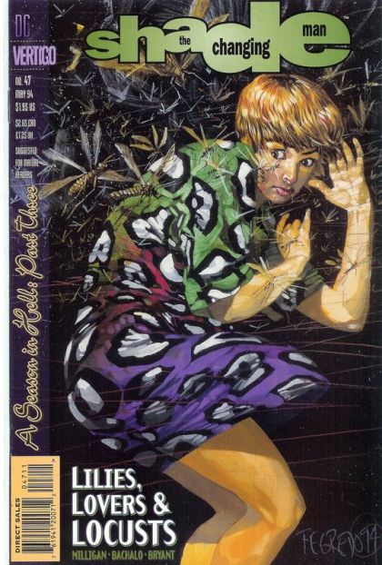 Part 3 of the 6-part 'A Season in Hell.' Shade attempts to enlist the aid of the divine Ms. Lenny in his conflict with the Celestials. Meanwhile, the secret of Shimmy's strange overbite is revealed. Written by Peter Milligan, with art by Chris Bachalo and Rick Bryant. Painted cover by Duncan Fegredo. Suggested for Mature Readers. New Format. Cover price $1.95.