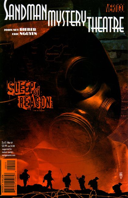 Written by John Ney Rieber. Art by Eric Nguyen. Cover by Tim Bradstreet. Kieran finds himself in the care of refugees who have foreseen the coming of a man - or a monster - in a strange mask. They nurse him back to health, but his soul may be slipping into madness. His transformation into the Sandman can save him - or destroy him. ? 2 of 5 ? 32 pg, FC ? MATURE READERS Cover price $2.99.