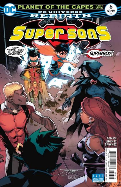 "Planet of the Capes" part one. ROBIN has a new member of the Teen Titans in mind and it's SUPERBOY! But the Boy of Steel's induction might be short-lived due to an unexpected strike from a group of villains that will send the Super Sons and Teen Titans on their wildest adventure yet! Plus, the first look at the all new Super Sons headquarters!