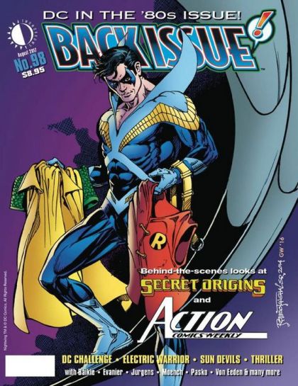 It's the "DC in the '80s" Issue! From the experimental to the fan faves, this was the decade when DC Comics declared, "There's No Stopping Us Now!" Behind-the-scenes looks at Secret Origins, Action Comics Weekly, DC Challenge, Thriller, Electric Warrior, and Sun Devils. Featuring Jim Baikie, Mark Evanier, Dan Jurgens, Doug Moench, Martin Pasko, Trevor Von Eeden, and others! Featuring a mind-numbing Nightwing cover by Romeo Tanghal.