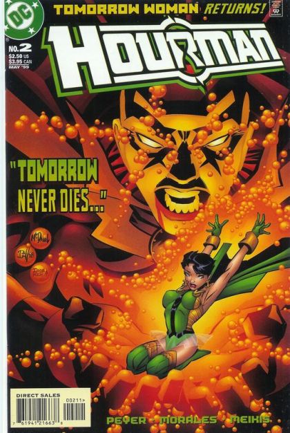 Cover pencils by Scott McDaniel, inks by John Dell. Romancing The Tombstone, script by Tom Peyer, pencils by Rags Morales, inks by David Meikis; Hourman brings Tomorrow Woman back to life to explain androids to him, and restores Bethany. A long essay on the creation of Hourman by Tony Bedard. 36 pgs. $2.50. Cover price $2.50.