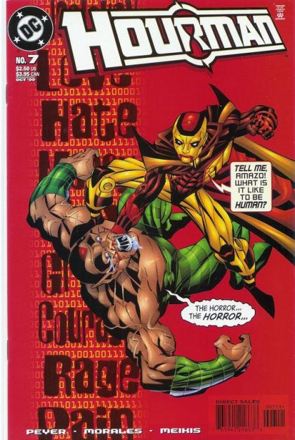 Written by Tom Peyer; art by Rags Morales and David Meikis; cover by Scott McDaniel and John Dell In stores August 11. The JLA guest-stars in the conclusion to the 2-part "The JLAndroids!" Amazo's back, and he's used his new powers to steal the very humanity from the Justice League, leaving them cold, heartless automatons. But as the original evil android becomes truly human, he's filled to bursting with strange emotions he cannot handle, making him the most unpredictable and dangerous being on the planet! Must Hourman abandon his own quest for humanity in order to save his friends? FC, 32 pg.$2.50" Cover price $2.50.