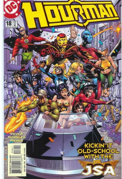 WRITTEN BY TOM PEYER; ART BY RAGS MORALES AND DAVID MEIKIS; COVER BY RAGS MORALES Part 1 of the 2-part "High Society," guest-starring the JSA! Whatever else troubles Hourman, he can always take pride in being a member of the Justice Society of America. But Hourman's glory days may come to an end sooner than he thinks! What terrible events could lead his teammates to turn their backs on him? And can even the Master of Time put off the end of a friendship? FC, 32 PG. Cover price $2.50.