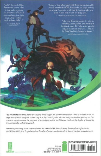 Tajo returns to her family home on Salus, to find a city on the brink of devastation. There is no food, no air, no hope for mankind's last great dome city. Now, Tajo must band together with IO, a man carrying a secret millennia old, and Mertali, a brave mermaid from the gladiator pits of Poluma, to fight for a better future for everyone. But death stalks the desolate streets of Salus, a ruthless killer who will stop at nothing to see the city drown in its own blood-a killer that Tajo created, and now must face again one final time. Collects LOW #16-19