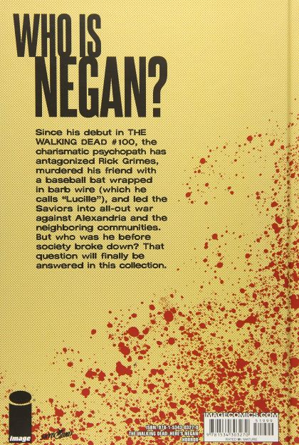 Who is Negan? Since his debut in THE WALKING DEAD #100, the charismatic psychopath has antagonized Rick Grimes, murdered his friend with a baseball bat wrapped in barb wire (which he calls "Lucille"), and led the Saviors into war against Alexandria and the neighboring communities. But who was he before society broke down? That question will be answered here, collecting the "HERE'S NEGAN!" story originally serialized in IMAGE+ magazine.