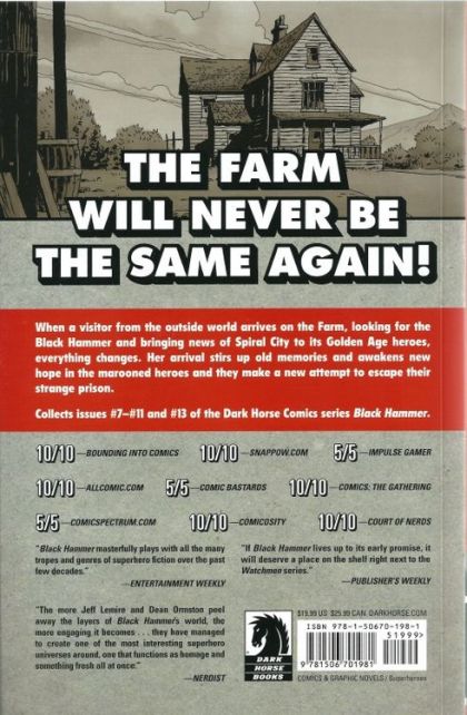 When a visitor from the outside world arrives on the Farm, looking for the Black Hammer and bringing news of Spiral City to its Golden Age heroes, everything changes. Her arrival stirs up old memories and awakens new hope in the marooned heroes and they make a new attempt to escape their strange prison. "this the best superhero comic on the stands." -IGN