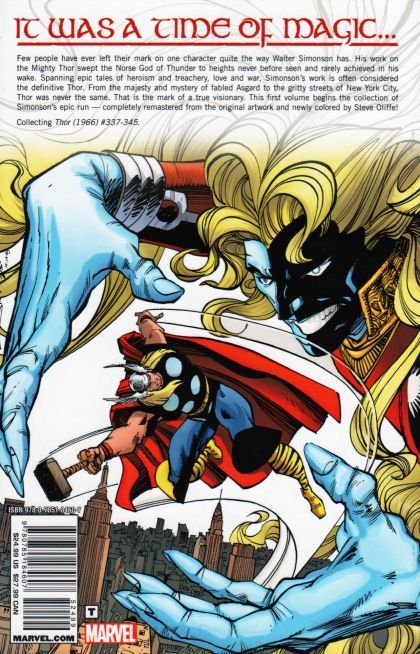 Few people have ever left their mark on one character quite the way Walter Simonson has. His work on the Mighty Thor swept the Norse God of Thunder to heights never before seen and rarely achieved in his wake. Spanning epic tales of heroism and treachery, love and war, Simonson's work is often considered the definitive Thor. From the majesty and mystery of fabled Asgard to the gritty streets of New York City, Thor was never the same. That is the mark of a true visionary. This first volume begins the collection of Simonson's epic run - completely remastered from the original artwork and newly colored by Steve Oliffe! Collecting THOR #337-345.