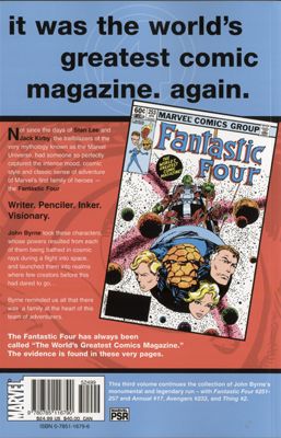 Written by JOHN BYRNE Pencils & Cover by JOHN BYRNE Not since the days of Stan Lee and Jack Kirby, the trailblazers of the Marvel Universe, had someone so perfectly captured the intense mood, cosmic style and classic sense of adventure of Marvel's first family of super heroes. Writer/artist John Byrne launched the Fantastic Four into realms where few creators before had dared to go. Now, the collection of his classic run continues! Featuring a four-part epic deep within the Negative Zone -- and the death of?Reed Richards?! Plus: Galactus devours the Skrull homeworld, and the Fantastic Four say goodbye to the Baxter Building! Guest-starring the Avengers! Collects FANTASTIC FOUR #251-257 and ANNUAL #17, AVENGERS #233, and THING #2. 264 PGS./MARVEL PSR
