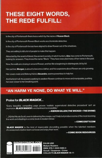 The trap around Rowan Black continues to close, with the Hammer closing in on one side and the Ascension now in motion on the other. But the ultimate wound may not be wielded by magick, but instead delivered via the heart. New York Times bestselling creators GREG RUCKA and NICOLA SCOTT bring you the second volume of the critically acclaimed series. Collects BLACK MAGICK #6-11.