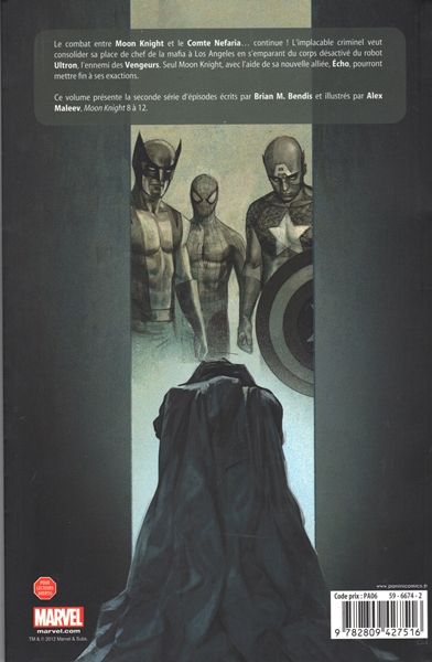 Brian M. Bendis et Alex Maleev signent la fin de la série consacrée à Moon Knight avec une histoire palpitante. Le justicier aux personnalités multiples y combat le terrible Comte Luchino Nefaria, avec l'aide d'Écho, et les Vengeurs font une apparition remarquée !