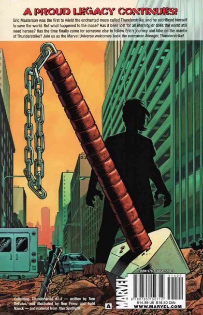 Written by TOM DEFALCO Pencils by RON FRENZ & TODD NAUCK Cover by RON FRENZ A proud legacy continues! Eric Masterson was the first to wield the enchanted mace called Thunderstrike, and he sacrificed himself to save the world. But what happened to the mace? Has it been lost for all eternity, or does the world still need heroes? Has the time finally come for someone else to follow Eric's journey and take on the mantle of Thunderstrike? Join us as the Marvel Universe welcomes back the everyman Avenger, Thunderstrike! Collecting THUNDERSTRIKE #1-5 and material from THOR SPOTLIGHT. 136 PGS./Rated A