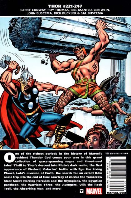 One of the richest periods in the history of Marvel's resident Thunder God comes your way in this grand collection of space-spanning sagas and time-travel tales! Thrill to Thor's descent into Pluto's dark realm, the first appearance of Firelord, Galactus' battle with Ego the Living Planet, Loki's invasion of Earth, the search for an errant Odin and a trip into the end of time courtesy of Zarrko the Tomorrow Man! Guest starring Hercules and the Olympians, the Egyptian pantheon, the Warriors Three, the Avengers, Ulik the Rock Troll, the Absorbing Man, and more! Collecting THOR (1966) #221-247.