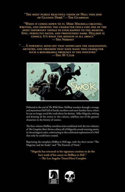 The Hellboy saga concludes, with the most ambitious chapter, Hellboy in Hell, collected in its entirety-all written and drawn by Mike Mignola. Hellboy is cast into Hell, where familiar faces reveal secrets of his origins, and previously unknown family members come forward. Hellboy forever alters the face of Hell, giving new significance to his role of Beast of the Apocalypse. While featuring big answers and one of the most momentous choices Hellboy's ever made, Hellboy in Hell also offers a return to the simplest and best Hellboy stories, as Hellboy roams a unique world only Mignola could present, filled with strange and magical encounters rich with the power of folklore and myth. The Hellboy Omnibus series collects Hellboy stories in chronological order for a definitive reading experience.