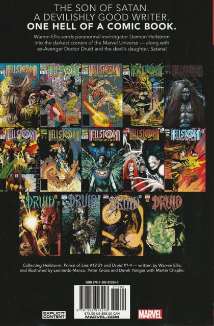 In his first American Marvel comic, rising superstar Warren Ellis made one hell of a debut! Now, rediscover his edgy and unsettling tales of Daimon Hellstrom, the Son of Satan himself! Daimon is on the hunt of a serial magician murderer alongside his ally Isaac Christians, the Gargoyle. But who is Jaine Cutter, and what is her role in the delicate balance between Heaven and Hell? What terrible fate lies in store for Daimon's ex-wife, Patsy "Hellcat" Walker? And what happened to Daimon during his fateful confrontation with his demonic father? Ghosts, demons and things that go bump in the night all await - as does the truth about Satan himself! Plus: Ellis revamps the sorcerous Doctor Druid! Collecting HELLSTORM: PRINCE OF LIES #12-21 and DRUID #1-4. Explicit Content