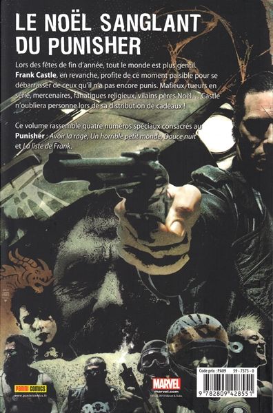 Frank Castle va sauver la vie d'un ancien compagnon d'armes du Vietnam avant d'affronter un déséquilibré, des assassins d'enfants et le Père Noël ! Les meilleurs auteurs de comics passent du côté obscur de l'univers Marvel.