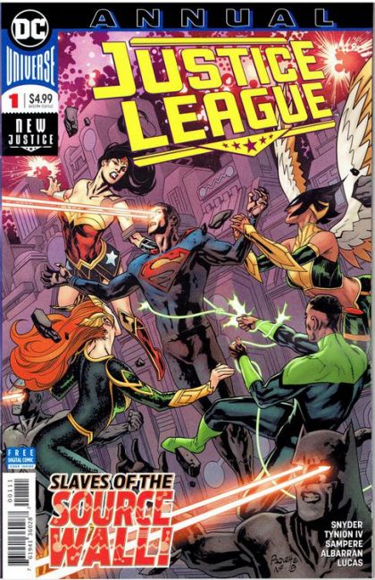 The Source Wall has degraded too much, and the League must patch the hole right now or the whole Multiverse will collapse! Our heroes scramble for a solution and turn to the only thing that might work: the Omega Titans! The only problem? They killed the Entropy Titan back in JUSTICE LEAGUE: NO JUSTICE. Whoops...but never fear! Kyle Rayner, Miss Martian and Steel-from the non-planet-eating Titans team-guest-star with a plan to create a new Entropy Titan...one that's so crazy it just might work.