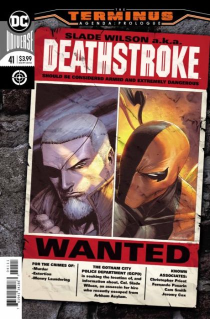 A prelude to "The Terminus Agenda"! The road to the highly anticipated Teen Titans/Deathstroke crossover event starts here! Deathstroke's body count has grown even higher after murdering his therapist en route to escaping from Arkham Asylum, which prompts Commissioner Gordon to expose Slade's identity as Deathstroke to the public! Now the world's most wanted criminal, the walls are closing in on Slade Wilson, and a new threat, Damian Wayne's newest Teen Titans, waits around the corner...Is there any hope of escape for the World's Deadliest Assassin?