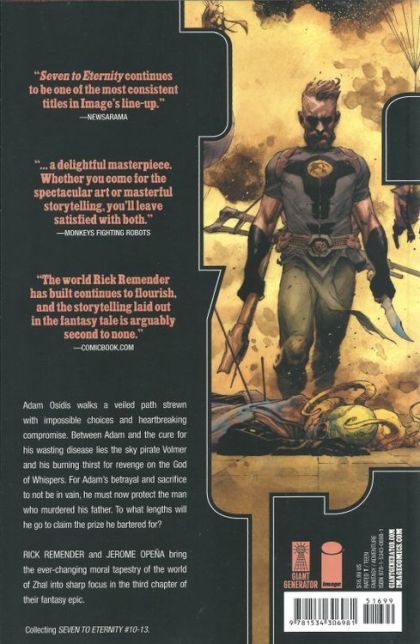 Adam Osidis walks a veiled path strewn with impossible choices and heartbreaking compromise. Between Adam and the cure for his wasting disease lies the Skylord Volmer and his thirst for revenge on The God of Whispers. Adam must now protect the man who murdered his father, but to what lengths will he go to achieve it? RICK REMENDER and JEROME OPE A bring the first chapter of the world of Zhal to a bone-chilling conclusion. Collects SEVEN TO ETERNITY #10-13
