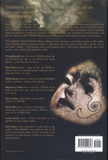 | Artist | P. Craig Russell, Glenn Fabry, Milo Manara, Frank Quitely, Miguelanxo Prado, Barron Storey, Bill Sienkiewicz |