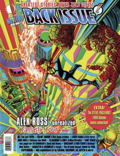Back Issue #118 is a Greatest Stories Never Told issue! Alex Ross' unrealized Fantastic Four reboot, DC: The Lost 1970s (including Joe Simon's Guardian Angel and Gerry Conway and John Calnan's Ninja the Invisible), Frank Thorne's Red Sonja preliminaries, Chris Claremont and Dave Sim's X-Men/Cerebus, Mike Grell's Batman/Jon Sable, Larry Hama's Fury Force, Curt Swan's lost pages from Ed Hannigan's Skull and Bones, Steve Englehart and Trevor Von Eeden's Batman/Mad Hatter, Brian Augustyn and Mike Parobeck's Target, and Paul Kupperberg's insider's look at the ill-fated Impact reboot (with unpublished art by Dave Cockrum, Michael Netzer, and more)!