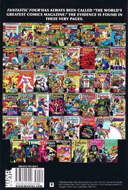 Written by JOHN BYRNE, CHRIS CLAREMONT, MARV WOLFMAN, BILL MANTLO, STAN LEE & ROGER STERN Penciled by JOHN BYRNE, MIKE ZECK, JACK KIRBY & RON WILSON Covers by JOHN BYRNE It was the world's greatest comic magazine - again! Not since the days of Stan Lee and Jack Kirby had a creator so perfectly captured the intense mood, cosmic style and classic sense of adventure of Marvel's First Family. Fresh off an earth-shattering and reputation-making run as penciler on UNCANNY X-MEN, John Byrne proved his writing talent was every bit the equal of his art as he pulled double-duty on FANTASTIC FOUR, launching Reed, Sue, Ben and Johnny into realms of imagination and wonder into which few creators before had dared to travel. From the four corners of the globe to the farthest reaches of space to the deepest depths of the Negative Zone, the FF face off against foes old and new - including the Dr. Doom, Galactus and Annihilus! Plus: The FF aid the Inhumans, bid farewell to the Baxter Building, don new costumes and celebrate their 20th anniversary in style as Byrne reminds us all there's a family at the heart of this team of adventurers! Collecting MARVEL TEAM-UP (1972) #61-62; MARVEL TWO-IN-ONE #50; FANTASTIC FOUR (1961) #215-218, #220-221, #232-262 and ANNUAL #17; PETER PARKER, THE SPECTACULAR SPIDER-MAN (1976) #42; AVENGERS (1963) #233; THING (1983) #2; and ALPHA FLIGHT (1983) #4. 1084 PGS./Rated A ?$125.00