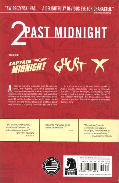 A madman is on the loose. His goal: Shock, awe, panic, and hysteria. Can three disparate heroes-an investigative specter, a psychopathic vigilante, and a time-traveling genius-put aside their differences to defeat this terror-focused sociopath? Find out what happens when Ghost, X, and Captain Midnight meet up in the first crossover of Dark Horse's new superhero comics! Collects the Two Past Midnight Dynamics ePlate comics/Dark Horse Digital issues #1-#5.