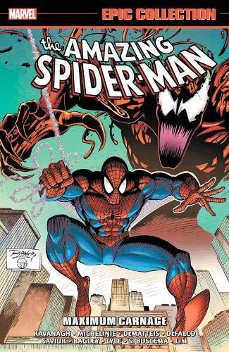 Symbiotes clash - with Spidey in the middle! Carnage, the spawn of Venom, has assembled an army of the web-slinger'swebslinger's criminally insane adversaries to spread his message of hostility, chaos and wholesale slaughter: Carrion, Demogoblin, Shriek and the Spider-Man Doppelganger! Outmanned and overpowered, the wall-crawler must recruit his own band of super-beings to combat the rising tide of evil: Black Cat, Cloak & Dagger, Firestar, Captain America, Iron Fist, Deathlok and...Venom?! Spider-Man's worst enemy becomes his uneasy ally in the battle to halt the pure evil of Carnage's mad rampage! Plus, an explosive day for Peter Parker leads him into a savage showdown with the Punisher - and Sabretooth! Collecting AMAZING SPIDER-MAN (1963) #378-380, WEB OF SPIDER-MAN (1985) #101-103, SPIDER-MAN (1990) #35-37, SPECTACULAR SPIDER-MAN (1976) #201-203, SPIDER-MAN/PUNISHER/SABRETOOTH: DESIGNER GENES and material from SPIDER-MAN UNLIMITED (1993) #1-2. Rated T+