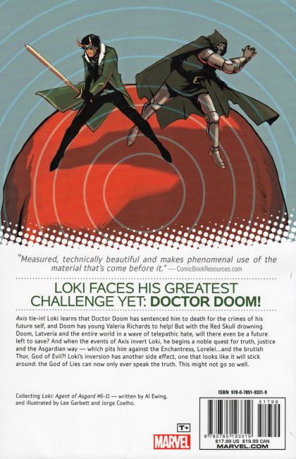AXIS tie-in! Loki faces his greatest challenge yet: Dr. Doom! But with Valeria Richards in the mix, who's the hero of this story - and who's the villain? Loki learns that Doom has sentenced him to death for the crimes of his future self! But with the Red Skull drowning Doom, Latveria and the entire world in a wave of telepathic hate, will there even be a future left to save? And when the events of AXIS invert Loki, he begins a noble quest for truth, justice and the Asgardian way - which pits him against the Enchantress, Loreleiand the brutish Thor, god of evil?! Loki's inversion has another side effect, one that looks like it will stick around: the God of Lies can now only ever speak the truth. This might not go so well. Collecting LOKI: AGENT OF ASGARD #6-11.