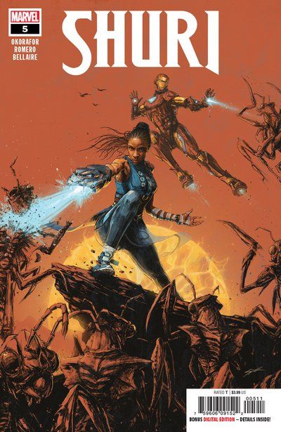 THE TWO BADDEST GAUNTLET-WIELDERS IN THE MARVEL UNIVERSE UNITE! An alien creature has invaded Wakanda! And with her powers strangely malfunctioning and her brother still missing, Shuri is in over her head. Time to call for backup. Enter: Iron Man! But can these two tech geniuses figure out how to de-power an energy-sucking alien before it destroys the entire continent? Don't miss the end of the first arc - and a dramatic change for the princess of Wakanda! Rated T