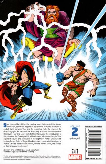 Stan Lee and Jack Kirby, the creative team that sparked the Marvel revolution, set off on Asgardian adventures featuring the fight-to-end-all-fights between Thor and the Incredible Hulk! There's also the return of the Grey Gargoyle, the debut of the Absorbing Man and the unstoppable Destroyer, Thor and Loki's exile to Skornheim and the introduction of Hercules and the Greek gods! And it all leads to an epic adventure that pits Thor against Hercules and concludes in the depths of Pluto's Underworld! Lest we forget, Tales of Asgard backs up every issue with the origins of Marvel's Norse pantheon of heroes, villains and mystic lands; the secrets of Ragnarok; and much more! Collecting JOURNEY INTO MYSTERY (1952) #110-125 and ANNUAL #1, THOR (1966) #126-130, and material from NOT BRAND ECHH #3. All Ages