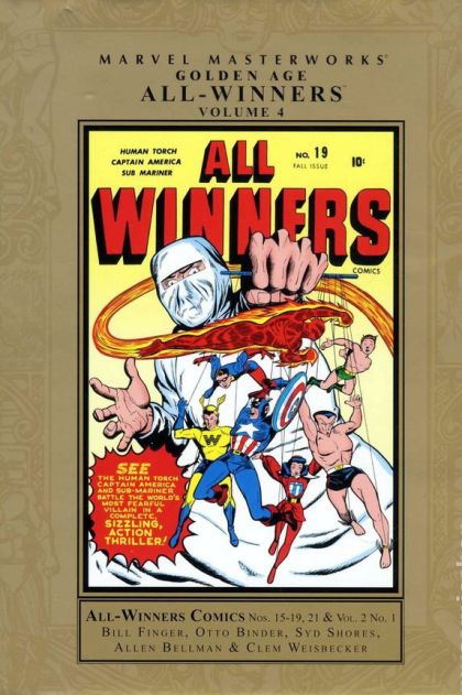 Written by BILL FINGER, OTTO BINDER & VARIOUS Penciled by SYD SHORES, AL AVISON, CARL PFEUFER, VINCE ALASCIA & VARIOUS Cover by SYD SHORES Combating everyone from World War II Axis armies to voodoo priestesses and atomic saboteurs, the super heroes of the Golden Age engaged in adventures wilder than any other. And in the pages of ALL-WINNERS COMICS, the solo adventures of Captain America, the Sub-Mariner, the Human Torch and their cohorts were worth every thin dime. Of course, Marvel's greatest Golden Age heroes had already been together in one book, but there was one winning concept that hadn't been explored - a team-up! Now, at last, the fantastic tales that brought together Captain America, Bucky, the Human Torch, Toro, the Sub-Mariner, Miss America and the Whizzer as Marvel's first super-hero team - the All-Winners Squad - are presented complete and painstakingly restored for the first time! Joining forces, these seven heroes appeared in two amazing book-length adventures in which they raced to solve the perplexing riddle of Isbisa, and journeyed across the globe and back in a fierce fight with Madame Death and the Future Man! Also including the one-issue relaunch of ALL-WINNERS featuring the beautiful Blonde Phantom, this volume proudly completes your collection - making us winners one and all! Collecting ALL-WINNERS COMICS (1941) #15-19 and #21, and ALL-WINNERS COMICS (1948) #1. 312 PGS./All Ages ?$64.99