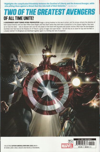 Two of the greatest Avengers of all unite! A government agent turned Hydra provocateur stages a daring breakout on her way to prison, and the escape attracts the attention of both Captain America and Iron Man! When Steve Rogers and Tony Stark realize they both have a connection to the slippery fugitive, they team up to track her down - only to discover she's not the only player on the board with big plans and sinister motives. What have the two Avengers stumbled into? And how do the Paladins fit in? They're a group of eager new super heroes - but will they be an asset for Cap and Iron Man, or a deadly liability? It's Winghead and Shellhead together again in a thrilling new tale of suspense! Collecting CAPTAIN AMERICA/IRON MAN (2021) #1-5. Rated T+