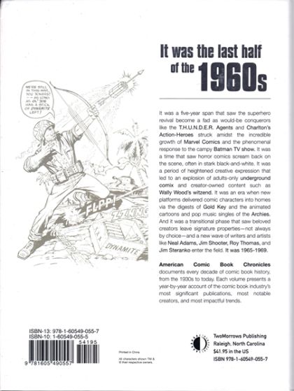 The American Comic Book Chronicles continues its ambitious series of full-color hardcovers, where TwoMorrows' top authors document every decade of comic book history from the 1940s to today! John Wells covers the pivotal moments and behind-the-scenes details of comics during the stormy cultural upheaval of 1965-1969! You'll get a year-by-year account of the most significant publications, creators, and trends, including: The transformation of Marvel Comics into a pop phenomenon! Wally Wood's Tower Comics storms on the scene with the T.H.U.N.D.E.R. Agents while Charlton's Action Heroes strike a blow of their own! Batmania sweeps the nation as the smash Adam West TV show pushes superhero comic sales into orbit! Roy Thomas, Neal Adams, and Denny O'Neil lead a wave of fresh young voices in the comic book industry! Taken together, American Comic Book Chronicles forms a cohesive, linear overview of the entire landscape of comics history, sure to be an invaluable resource for every comic book enthusiast!