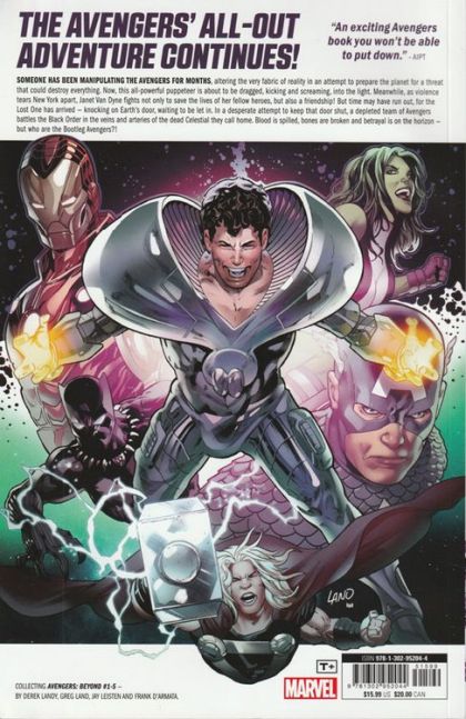 The Avengers' ALL-OUT adventure continues! Someone has been manipulating the Avengers for months, altering the very fabric of reality in an attempt to prepare the planet for a threat that could destroy everything. Now this all-powerful puppeteer is about to be dragged, kicking and screaming, into the light. Meanwhile, as violence tears New York apart, Janet Van Dyne fights not only to save the lives of her fellow heroes, but also a friendship! But time may have run out, for the Lost One has arrived - knocking on Earth's door, waiting to be let in. In a desperate attempt to keep that door shut, a depleted team of Avengers battles the Black Order in the veins and arteries of the dead Celestial they call home. Blood is spilled, bones are broken and betrayal is on the horizon - but who are the Bootleg Avengers?! Collecting AVENGERS: BEYOND #1-5. Rated T+