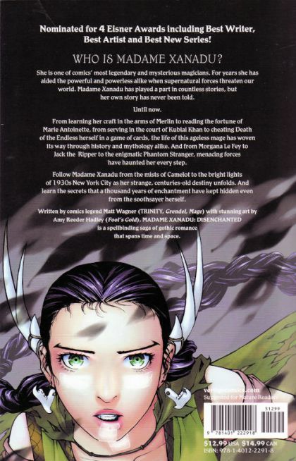 Written by Matt Wagner Art by Amy Reeder Hadley & Richard Friend Cover by Amy Reeder Hadley 'The fast pace [is] instantly immersive, as is Amy Reeder Hadley's finely detailed, complicated art, which is almost shockingly pretty. B+'- The Onion 'This features lots of the fairies, magicians and medieval-style witchcraft in a style that evokes at least a little bit the classic Midsummer Night's Dream issue of THE SANDMAN. The book looks lovely and reads well.' - Variety The first ten issues of the hit series from writer Matt Wagner and rising star artist Amy Reeder Hadley are collected in this new trade paperback! Madame Xanadu's powers of sight can change the course of human history, but her vision is clouded when she looks into herself. Thrown into worlds of war and men, she encounters a dark stranger who knows both her past and future. This debut volume reveals Madame Xanadu's centuries spanning origin from Camelot to the court of Kubla Khan to 1940s New York City and beyond? Featuring an introduction by James Robinson (STARMAN). Advance-solicited; on sale July 15 ? 240 pg, FC, 12.99 US MATURE READERS
