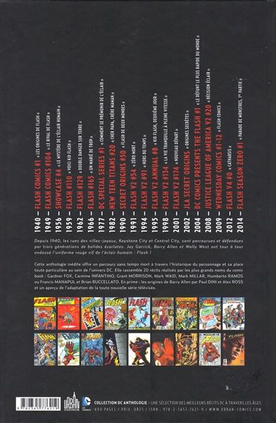 Flash Comics #1 (1), 104(2) ; Showcase #4 (1) ; Flash (1959) #110 (2), 129, 165 ; DC Special Series #1 (1) ; New Teen Titans (1980) #20 ; Secret Origins (1986) #50(2) ; Flash (1987) #54, 91, 134, 174 ; Flash Annual (1987) #8(2) ; JLA Secret Origins (2002)