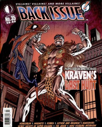 Retro reprobates of the ’70s and ’80s get their due in BACK ISSUE 35, our “Villains” issue. MIKE ZECK and J. M. DeMATTEIS discuss the shocking “Kraven’s Last Hunt” in an exclusive “Pro2Pro” interview, while the haphazard history of the horrific Hobgoblin is exposed. Plus: The Joker’s short-lived series, looks back at Secret Society of Super-Villains and Kobra, a Magneto biography, Luthor and Brainiac’s malevolent makeovers, and an all-new interview with Secret Society artist MIKE VOSBURG. Featuring contributions new and old from JOHN BYRNE, GERRY CONWAY, RON FRENZ, IRV NOVICK, CHRISTOPER PRIEST, JOHN ROMITA, JR., ROGER STERN, MARV WOLFMAN, and more. With a gripping Kraven the Hunter cover by Mike Zeck! Edited by MICHAEL EURY.