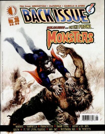 Monsters make mayhem in Back Issue and its triple-terror treatment of Frankenstein, with Bernie Wrightson's fascination with the Mary Shelley classic, a look at Marvel's Monster of Frankenstein, and a 'Frankenstein in Comics' timeline.Sink your teeth into history of Vampirella and Morbius the Living Vampire. Plus, Swamp Thing, Anton Arcane and his Un-Men, Man-Bat, and many more.