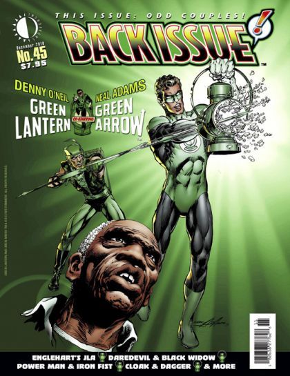 In BACK ISSUE #45 (84 pages with 16-page COLOR section, $7.95), we feature “Odd Couples,” headlined by an in-depth look at DENNY O’NEIL and NEAL ADAMS’ award-winning, groundbreaking Green Lantern/Green Arrow—plus an examination of the real-life events that inspired these relevant stories. The unusual pairing of one of Marvel’s hottest writers of the ’70s with DC’s Justice League of America is explored in an exclusive interview with STEVE ENGLEHART. Also: Daredevil and Black Widow, Power Man and Iron Fist, Vision and Scarlet Witch, Cloak and Dagger, and… Aquaman and Deadman (?!). With art by and/or commentary from TERRY AUSTIN, GENE COLAN, GERRY CONWAY, DENYS COWAN, DICK DILLIN, RICHARD HOWELL, RICK LEONARDI, STEVE SKEATES, and more. And a glorious recreation of the cover of Green Lantern #76 by NEAL ADAMS! Edited by MICHAEL EURY.