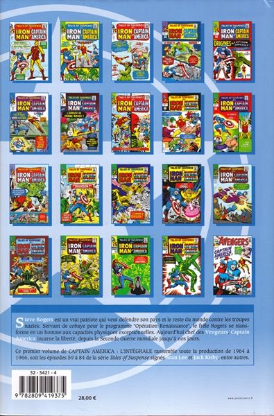 Panini Comics offre à l’emblématique héros, une place dans sa collection Intégrale. L’occasion de retrouver Captain America à travers une foule d'histoires courtes imaginées par les célébrissimes Stan Lee et Jack Kirby. Au programme : des affrontements qui ont construit la légende et la première apparition de Crâne Rouge. Cerise sur le gâteau ! Les premiers épisodes de Tales of Suspense ayant mis en scène Captain America sont totalement inédits en France !